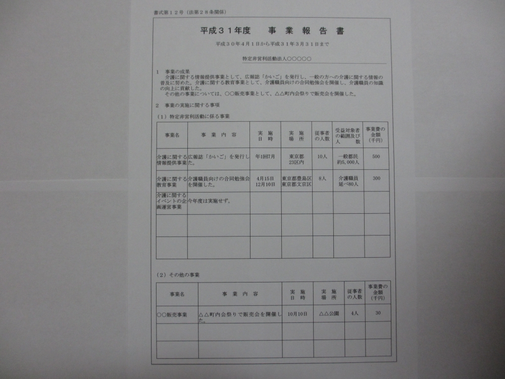 NPO法人「事業報告書」の書き方